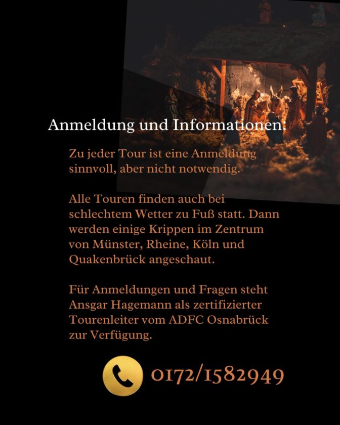 Im Januar bietet der ADFC (Allgemeiner Deutscher Fahrrad-Club) geführte Krippen-Fahrradtouren an. Eine davon beginnt auch ab Quakenbrück.