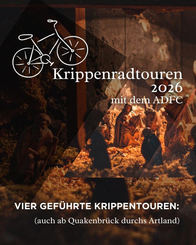 Im Januar bietet der ADFC (Allgemeiner Deutscher Fahrrad-Club) geführte Krippen-Fahrradtouren an. Eine davon beginnt auch ab Quakenbrück.